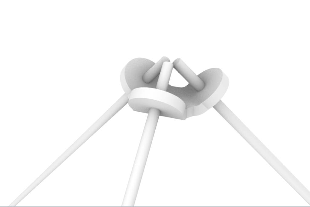 The intent was to design an efficient joint system to connect angled members of different sizes.The joints can be flipped and rotated to form multiple permutations and combinations, that could combine to make different recursive geometries. A flat based node with 3 angled anchor points was modelled.