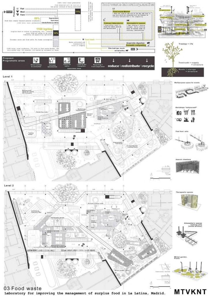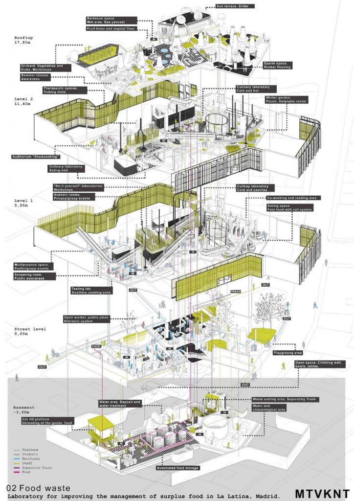 Food Waste designed by Irene Ayala, winner of the Advanced Architecture Contest, is a proposal for the management of food surpluses in La Latina, Madrid. A new format of public space that at the same time is a neighborhood equipment.
