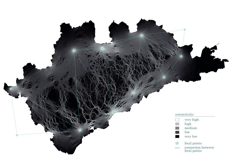 Rewilding is based on the hability of nature to manage itself by introducing certain species, in our case pollinators. We want to use the abandoned crops for that purpouse, but for achieving an ecological corridor in our territory we must find which ones provide better ecological connectivity. The creation of this map is a guideline of what can be the paths of pollination in the Area of the Vallès.