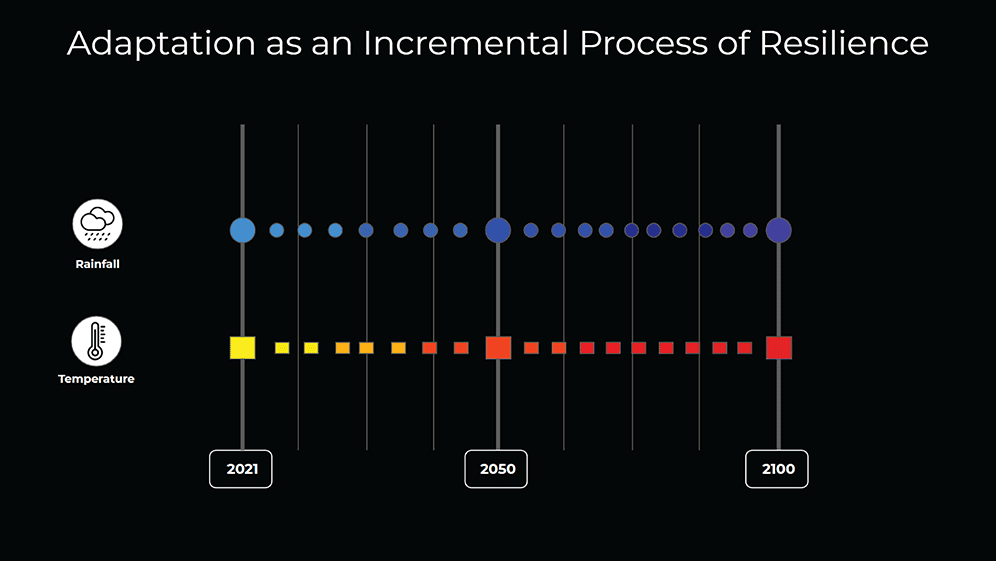Talking about the axis of climate change is comprehend that is a complex problem where variables can be affected by multiple factors, so we synthesized the main challenges to understanding better the starting point and then we subdivide the challenges of climate change to focus only on two main axes which were heat stress and flash floods, and how the answer can be merged with a natural answer by adding biodiversity of trees and then creates a chain attractor of actors like animals, pollinators, etc, by the new green infrastructure.