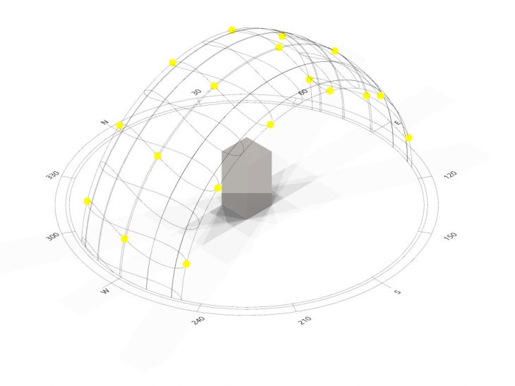 Considering the sun path which is symmetrical for whole year.The wall inclination parameter are iteration to understand how the sunrays are responding to the hyperboliod composition .
