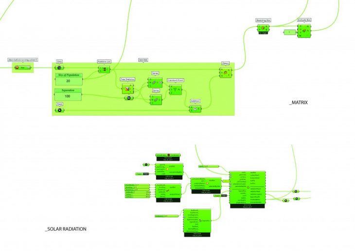 Within the limit for the area the engine tries to find maximum sunlight. The matrix system with grasshopper record data showing maximum value and minimum value for each iteration as well as shows the optimal(best) option for the form through evolutionary computation.