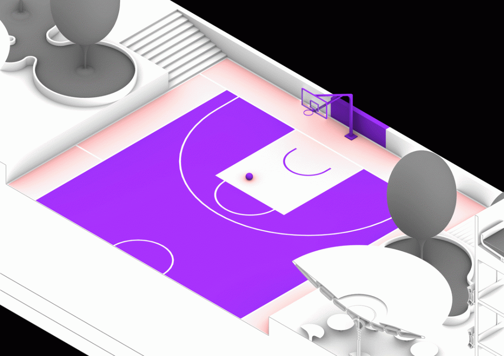 To influence microclimate on ground level we proposed three tools. First one is adaptive ponds. During the sunny dry weather these ponds will be used as play or sport grounds.so, we will have public spaces as an added value. Their position will be 10 cm below average ground surface in order to collect rainwater. After massive rainstorm playgrounds will become a sunken plaza for several days and create a natural pool. Pools will evaporate slowly and provide inhabitants with additional cooling effects. After some days water from the pool will be sent to the treatment system and serve for the same purpose. Second tool is inverted umbrellas. They are equipped with 18 small nozzles on the perimeter. Every 5 minutes nozzles spray cool treated water that affects climate. Moreover umbrellas create shaded areas that also contribute to improving the environment. One umbrella consumes 273 liters/day. So, water demand s depends on design and number of umbrellas. Another influential tool is trees. We all know that trees cool the air. Amount of green areas in 28 blocks today is 8m2/capita. The goal of Barcelona city council is to increase it by 15m2./capita. Using trees as a design proposal can help us to achieve both goals. Moreover, trees doesn’t require water to irrigate and provide shade. These 3 main tools will be implemented for ‘big’ and ‘small’ areas respectively. Combination of umbrellas and ponds are designed to fill ‘big’ areas, and umbrellas and trees will be used for ‘small’.