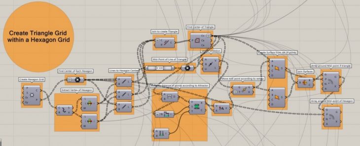 Step 1: Create triangle grid within overall hexagon grid that reacts to an attractor point