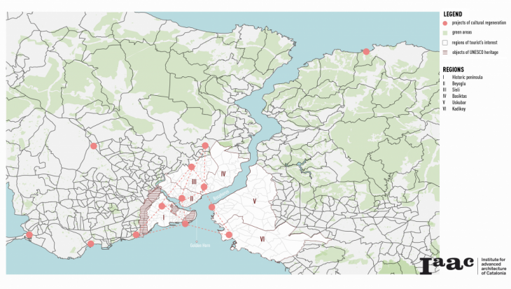 Istanbul Historical Peninsula is one of the rare settlements in the world that contains many structures from various religions, cultures, and communities that coexist in this geography. Four regions even were included in the UNESCO World Heritage List. Despite the fact, there is a high density of historical and cultural objects; most of them are segregated from each other forming clusters of two-three buildings or complexes but without general connectivity. This territory has a great potential for development as far as it also includes plenty of green spaces and access to water.