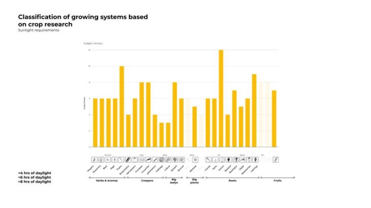 Classification of plants based on the numbers of sunlight hours required. This criteria helped in the selection of plants that only needed between 4 to 8 sunlight hours for growth.