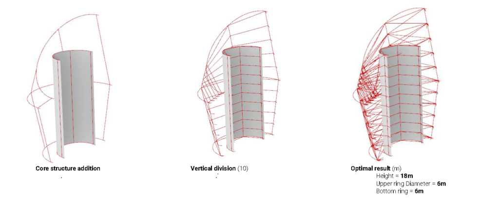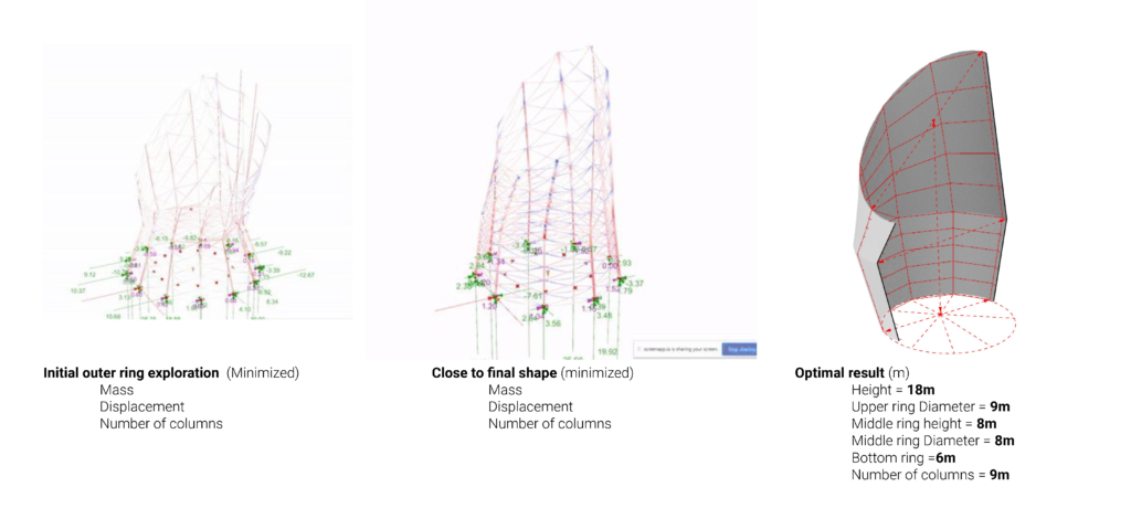 The first step is setting up the structural analysis models. This is done by running a genetic optimization of the form in an attempt to maximize shading below the structure.