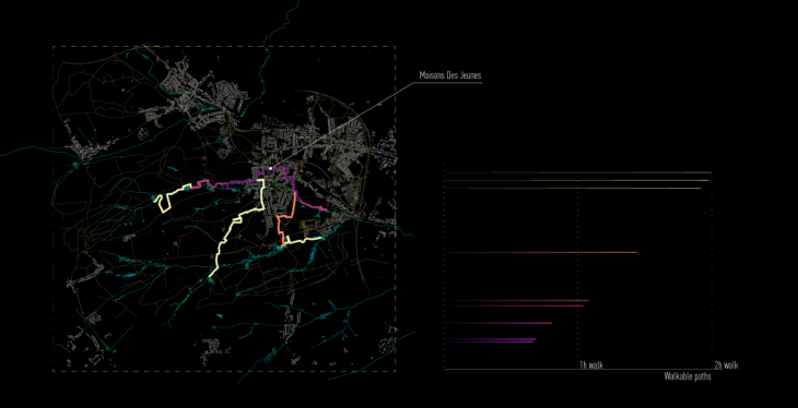 Walkable paths between Maisons de Jeunes and wetlands’ locations