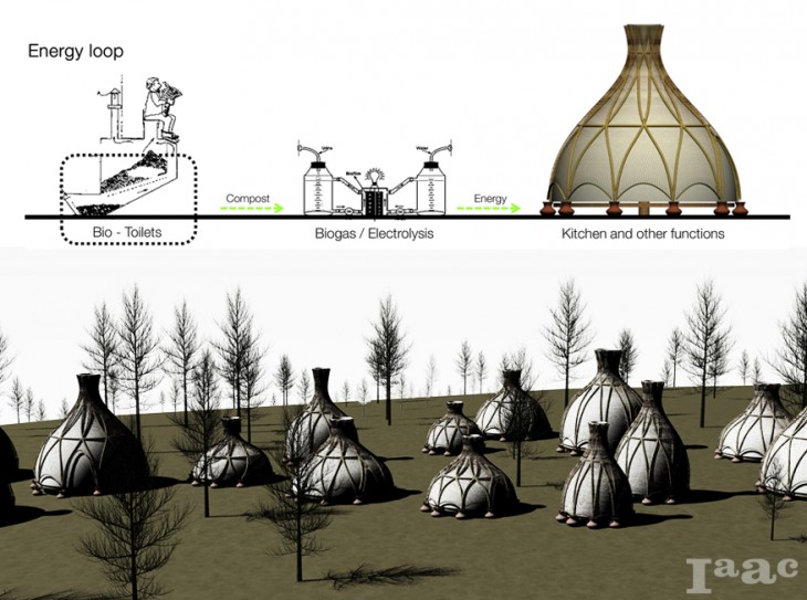 Nature is back to its original setup at this point. This is where the new self – sufficient comes in. A new masterplan with new activities – new design and energy saving techniques, prioritization of nature, economy, ethics, closed loop, eco system, regrowing nature, man as part of the closed loop and not as the centre.