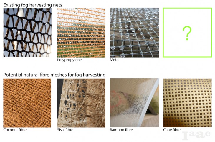 Fog collecting mesh – This mesh will be used for fog collection. It would be made of coconut fiber or any other natural fibre available locally, treated to be made hydrophobic. Composite meshes can be made as well.