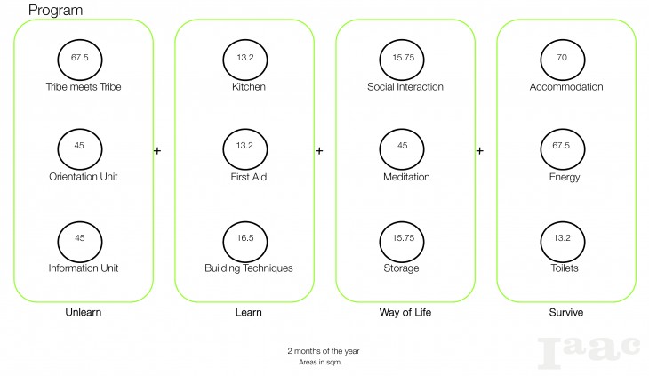 The Agenda of Self-Sufficient Buildings focussed on forming a Tribe, comprised of the students and faculty of the research studio, with the eventual aim of creating a system for a Self – sufficient OFFGRID campus at five given sites – Barcelona, Taliesin, India, China, Australia.