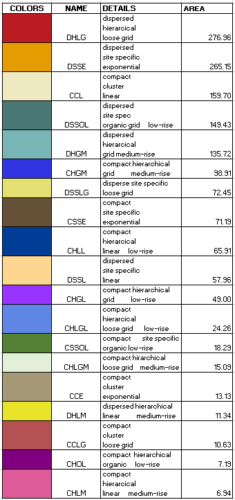 Even with these four properties one can get up to 84 potentially different fabrics. Of course, this list is not extensive enough to cover minute particularities of the cities but is a good base for initial distinctions and categorizations. As a result we discovered 19 fabrics in the city not fully correlating to the 18 administrative districts the city is divided into.