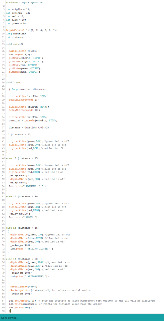 Light first turns green within a certain proximity and text appears on the LCD screen.