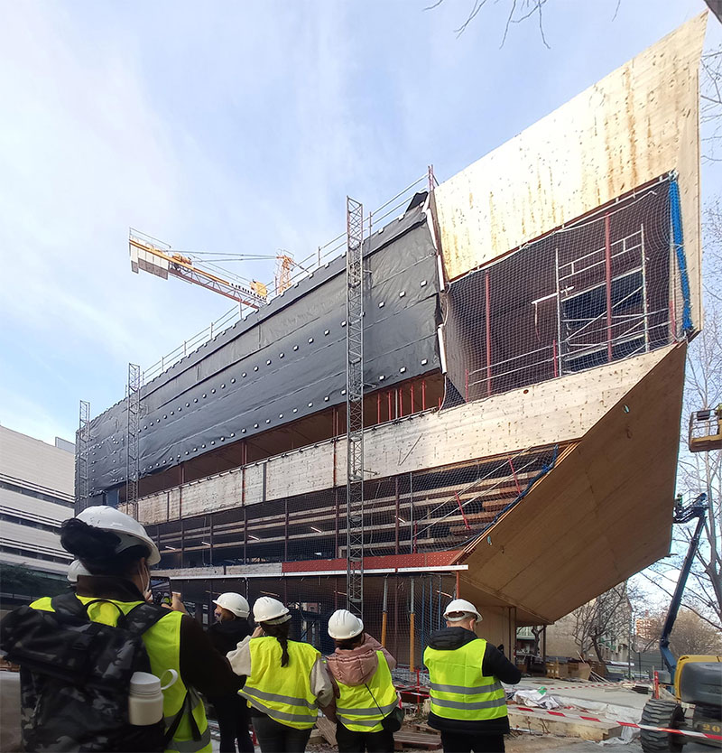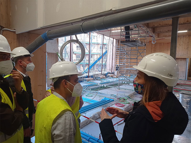 Last Thursday, January 28, the 2020-21 MAEBB students had the opportunity to visit the construction site under the guidance of Elena Orte. To carry out the visit safely, the strictest security measures were followed – these measures corresponded not only to the visit of a construction site, but also to the demands that the current pandemic imposes. Accordingly, the students were divided into small groups to enter the building, always guided by the architect who explained the process and answered some questions.