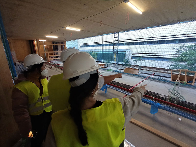 Additionally, during the visit the students were able to observe many of the heating and air conditioning systems, as well as electricity and water pipes, which are currently being assembled and are still on display. Summarily, it was the perfect time to better understand the different layers and logics that make up the building and an excellent learning opportunity for the MAEBB students.