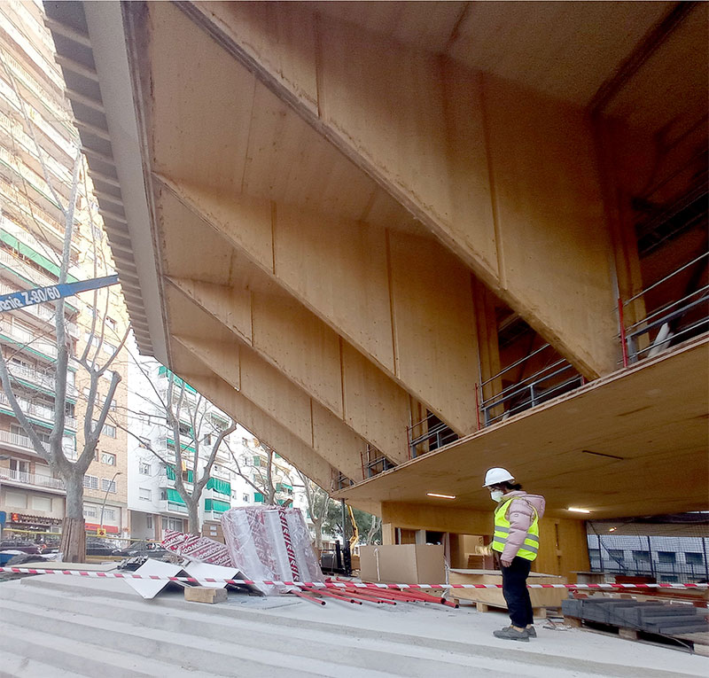 The Gabriel García Márquez library is one of the most important representations of mass timber design in Spain, as well as the building with the largest exposed wooden surface in Europe. Located in the Sant Martí area in Barcelona and designed by Elena Orte and Guillermo Sevillano, principals of Suma Arquitectura and faculties of the Master in Advanced Ecological Buildings and Biocities, the building is currently in an advanced construction process that allows us to understand its final form, but at the same time reveals the structural logic necessary to build a building of this size in wood.