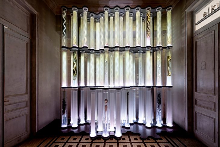 The restaurant has been conceived of as a continuous scenography fostering a seamless sensory experience. The different parts of this scenography feature sea life-inspired skins, art installations and custom-made furniture which establish a unique relationship with the surrounding space.