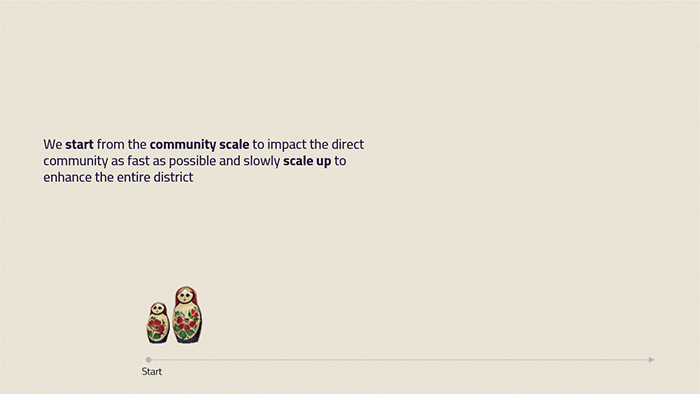 With the “One minute Rayon” and the interventions on the 3 scales we hope to provide services within walking distances which will improve the quality of the public realm and the built environment and improve connectivity and collaboration between communities. By this we create local jobs, improve the sense of place and the sense of ownership leading to a more sustainable, strong and resilient community.