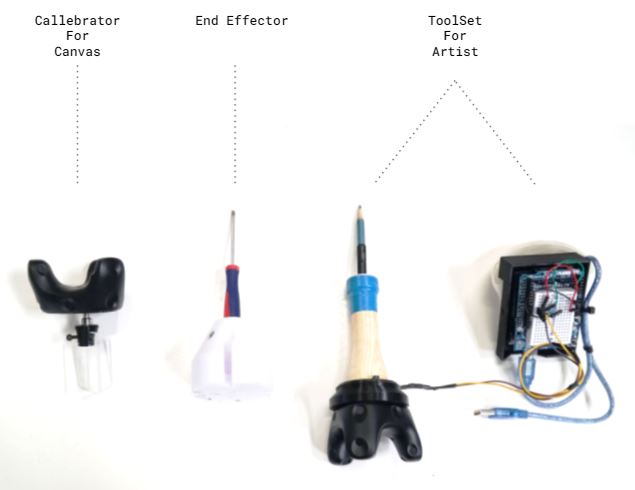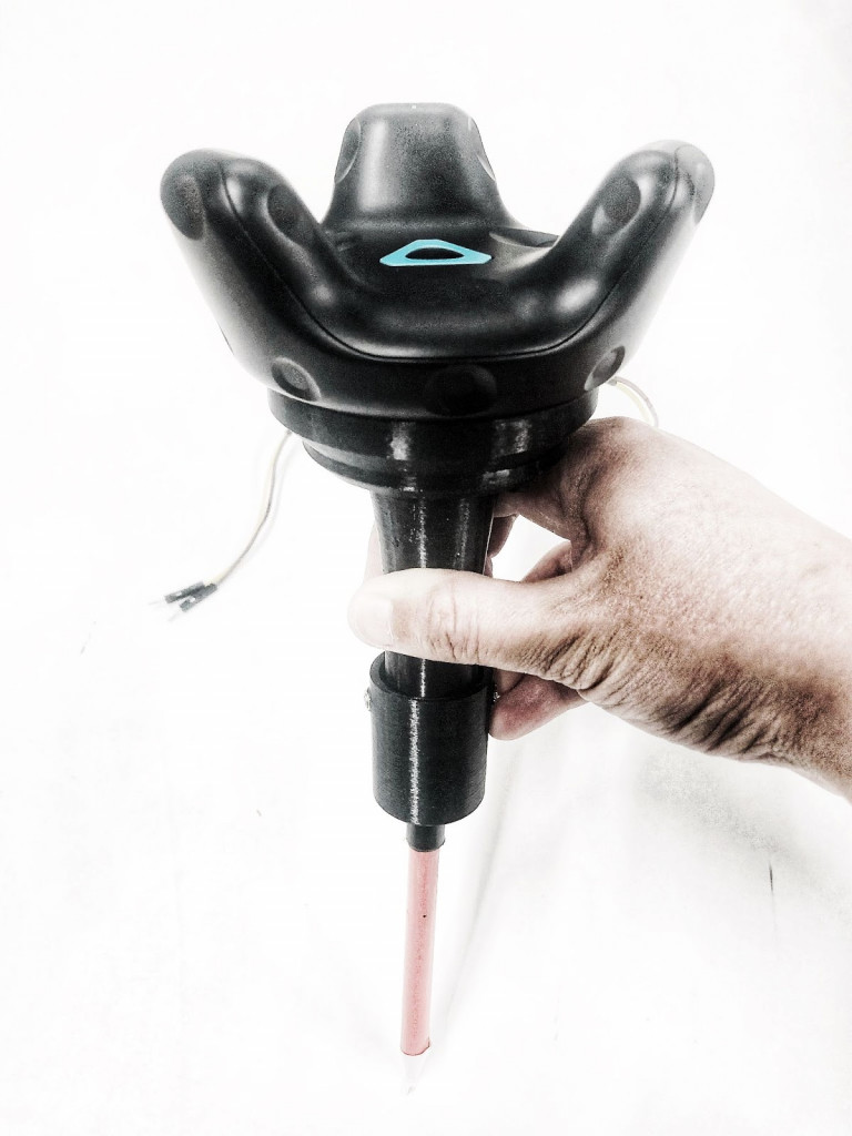 Artist tools – Custom designed tool is used in this project with force sensor fitted inside. The tool has a pen mounted. As the user presses the tool over the surface the force sensor inside the tool reads the reading and vive tracker is fixed on the top of the tool. Vive tracker helps to keep track of the human motion.