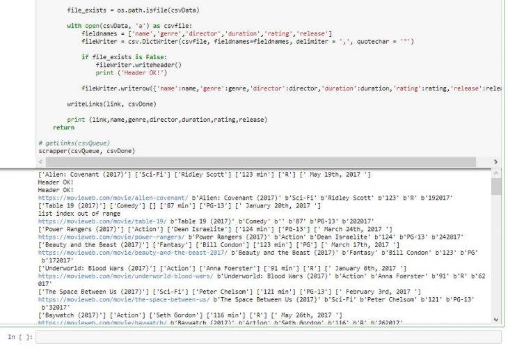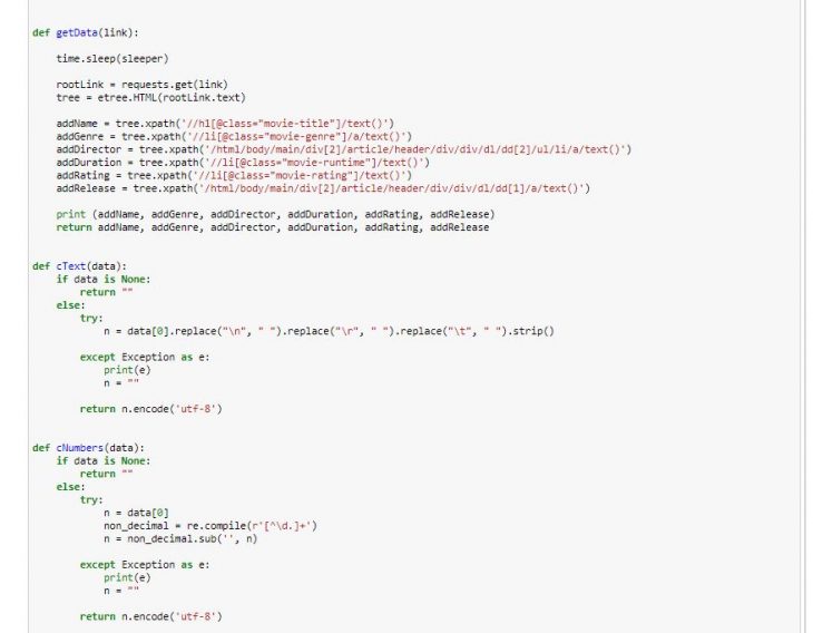 A popular movie viewing website was scrapped to get a list of links to movies created in 2017, including details of each movie such as; viewing rating, genre, release date, director, and duration. The scraped data was then converted to a csv and using pandas, visual illustrations were created to show the relationship between different variables.
