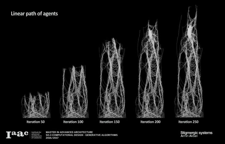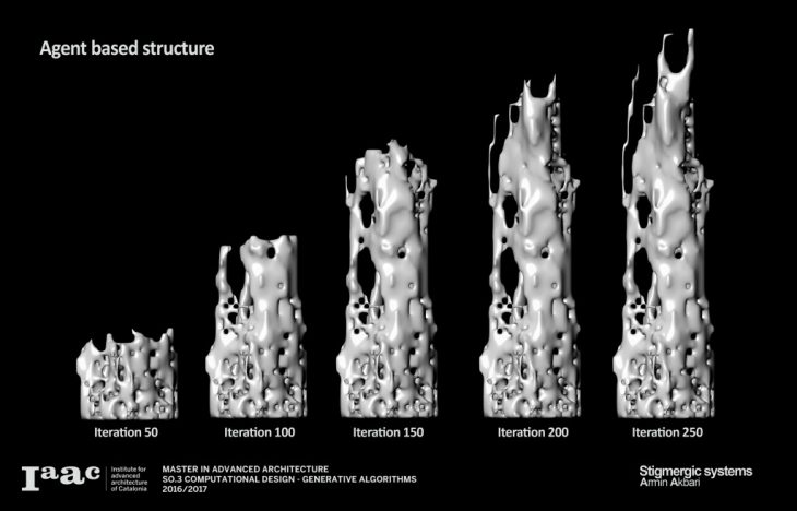 Starting from pervasive data inputs as operational substrate, participants will design basic behaviors for a multi-agent based system able to grow, building coherent compounds, which are not only responsive geometries, but are constantly assessed by an internal feedback system.