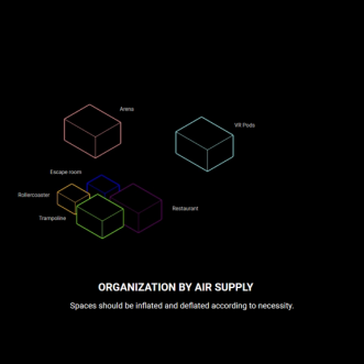 We would also have some inflatable inner divisions in the mixed uses vault, which could change its size to adjust them to the programmatic needs based on the predefined shape that we designed for the inflatable. So, we could have different scenarios for each different situation that the program requires.