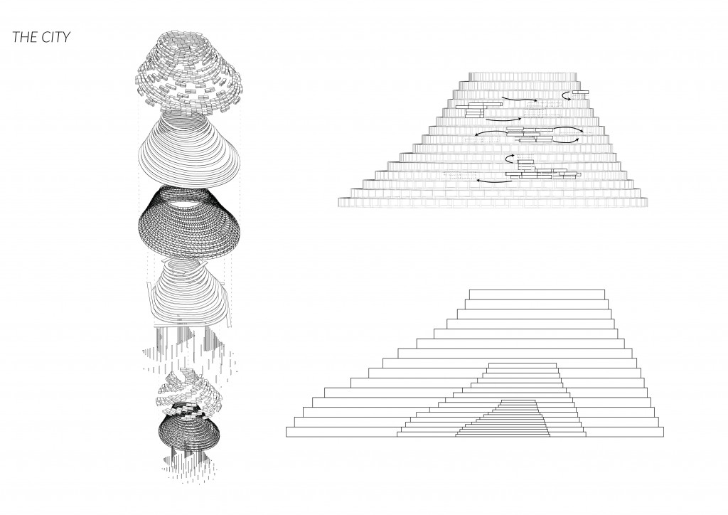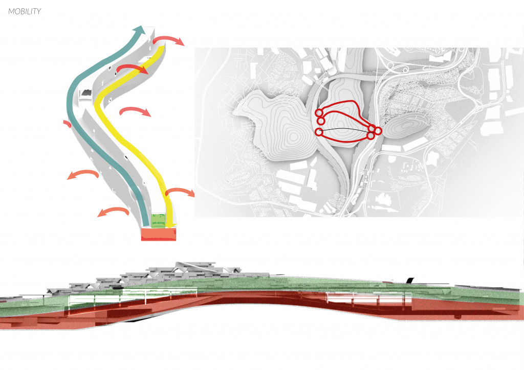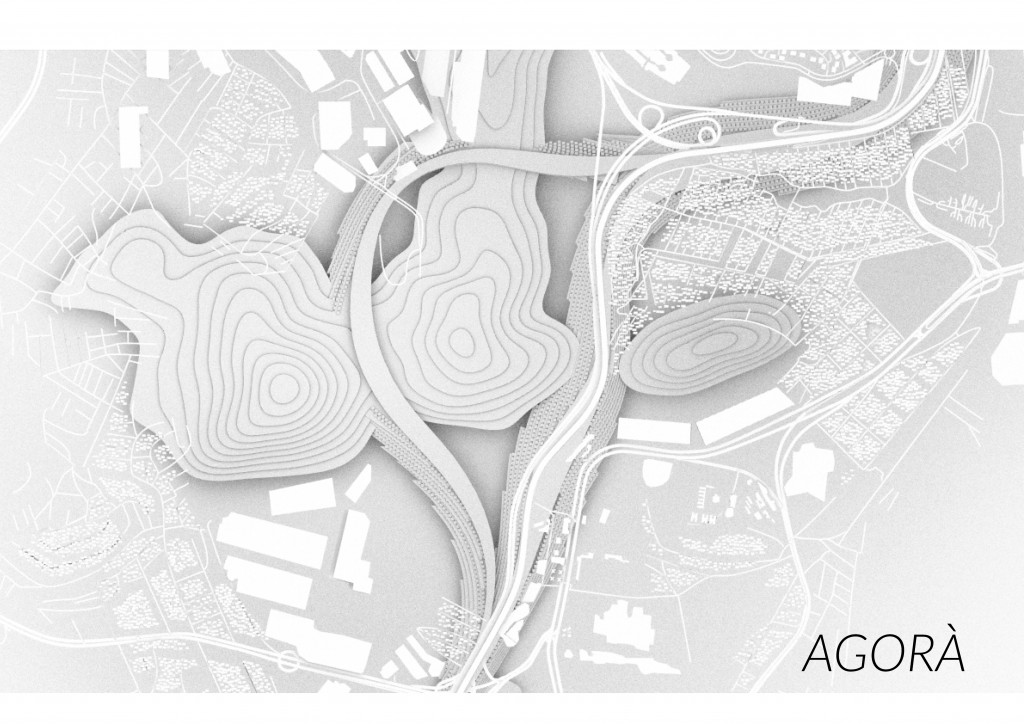 Agorà is the final project developed for the X-urban design Research studio. This project explores the possibility to use the brutalist infrastructure called “segundo piso” built in Mexico city during the last 20 years. The particular topography of this city offer the opportunity to fit in the context the previous work regarding an ex-novo city developed during the second term. Aim of this project is to adapt a speculative geometry to a real life context and and to reinterpretate a nowaday infrastructure to improve the mobility of the chosen site. the new brutalism infrastructure can be considered as an evolution of the Rudolph linear city. It has the double task to realm the mobility beetween the residencial hills and to offer new spaces for local production of food working area, productive facilities and residential dwellings, all in the same building in order to transcend the original purpose of the Ebenezer Howard’s Utopia