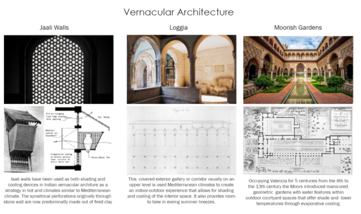 We followed this with research into vernacular and modern architecture in Mediterranean and tropical climates, then selected components of both types of architecture that we wanted to carry forward in our project.
