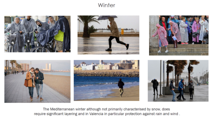 For an understanding of how the people and architecture of Valencia respond to the climate, we conducted a desk study starting with images of people reacting to Valencian summers and winters.
