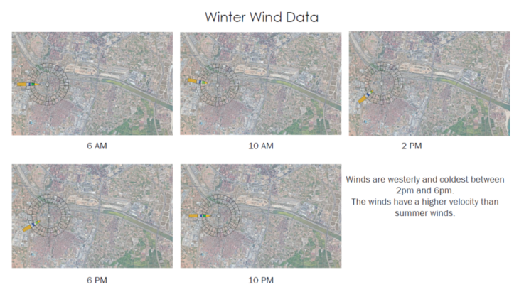 We then analyzed the wind on an hourly basis to determine its direction, speed and temperature. With the high levels of humidity on our site the air flow within the houses became an important aspect to focus on.