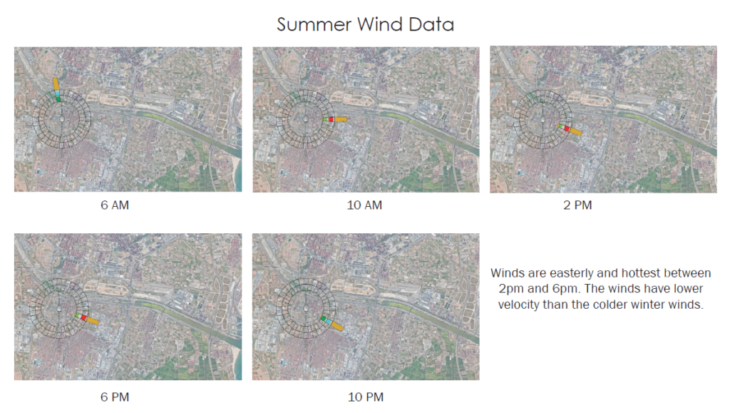 We then analyzed the wind on an hourly basis to determine its direction, speed and temperature. With the high levels of humidity on our site the air flow within the houses became an important aspect to focus on.