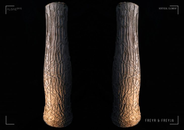 This novel way of articulated materiality allows the extrusion of three-dimensional continuous and porous elements, that ultimately conceives a biopoietic scaffold capable of hosting its own cryptogamic ecosystem. ALGAE[CRETE] acts as an artificial ecology that triggers the resurgence of marine life in places that requires it, and strategically responds to the pertinence of improving the environmental quality of highly-polluted urbanospheres.