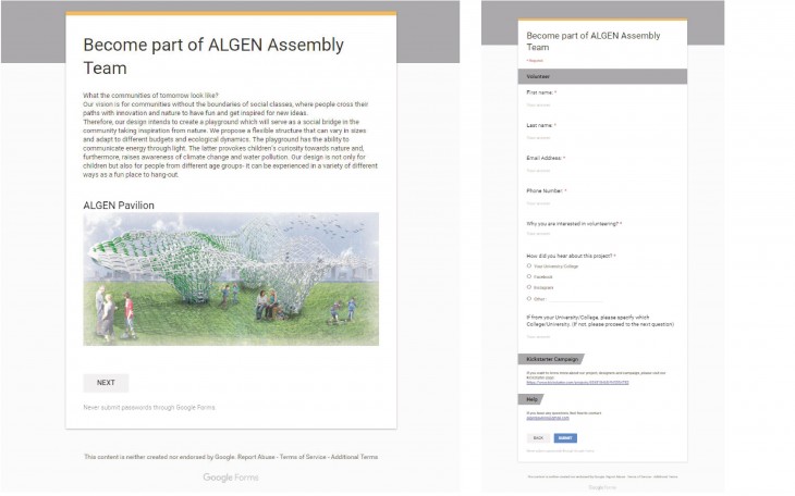 We are aware there will be many challenges while making the pavilion. We have already made a small scale prototype and tested the elements. The next step will be to make a full scale piece of the pavilion. We are experience in fabrication, algae growing and the weaving techniques needed in order to build the structure. Join us and be a part of the most interactive playground NYC has ever seen!