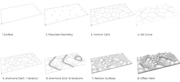 In spite of the pattern on the marble wall being 2D, the visual effect on the viewer was that of 3D because of the growth. This was translated and used as a base for the growth of this project. It would be almost as though the marble is growing outwards from the wall.