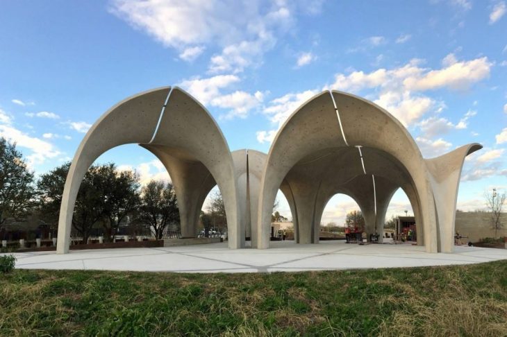 Confluence Park is a living laboratory that allows visitors to gain a greater understanding of the ecotypes of the South Texas region and the function of the San Antonio River watershed. Throughout the park, visitors learn through observation, engagement and active participation. Constructed of concrete petals designed thoughtfully to sit lightly upon the land, the BHP Pavilion— the main pavilion— forms a geometry that collects and funnels rainwater into a sitewide water catchment system. The pavilions throughout the park provide shade and shelter, simultaneously engaging visitors to visualize the cycle of water at Confluence Park and how it relates directly to the San Antonio Rivershed. The multi-purpose Estella Avery Education Center, featuring a green roof that provides thermal mass for passive heating and cooling, serves as a classroom space that opens to the pavilion. Rainwater collected through the site-wide water catchment system serves as the primary source of water throughout the park, and the entire site is powered by a photovoltaic array providing 100% of on-site energy on a yearly basis.