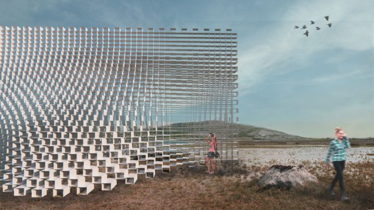 The pavilion, made of 1802 stacked fiberglass units, stands over 88 feet tall at its highest point and 39 feet long. the BIG-designed structure had been disassembled in london following its 2016 presentation in london by serpentine gallery and transported to north america to be re-assembled in toronto. this marks the first serpentine pavilion to make its way to north america. in its latest site, it will host ‘unzipped,’ westbank’s newest exhibition — showcasing an intimate collaboration between developer and architect where every element of the design is considered in relation to its context.