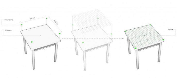 For data collection, the workspace is first defined as an area on a table surface, where different day-to-day objects can be recognized.