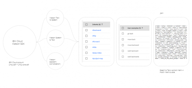 IBM Cloud training the assistant to recognize intent from the User’s voice and convert it to Unity animation commands: