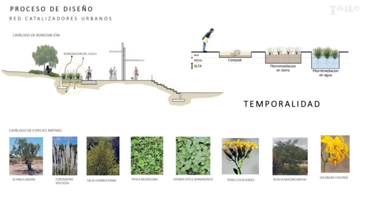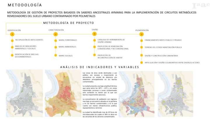 La metodología llevada a cabo inicia con acotar el concepto de espacio público analizado desde perspectivas medioambientales, sociales y ecosistémicas y una estrategia de intervención urbana de carácter prototípica que incorpora tecnología de biorremediación del suelo contaminado, las potencialidades de una biodiversidad nativa adaptativa y resiliente, un paisaje andino desértico-costero con condiciones de confort ideales para el desarrollo de actividades en el espacio público en convergencia con el saber ancestral del habitar para tratar de manera urbana las desigualdades socioecológicas presentes en las zonas de estudio. Para esto se creará una caja de herramientas en formato de catálogo que categorice las diversas tipologías de intervención de acuerdo con cada contexto territorial, ambiental y social específico a intervenir.