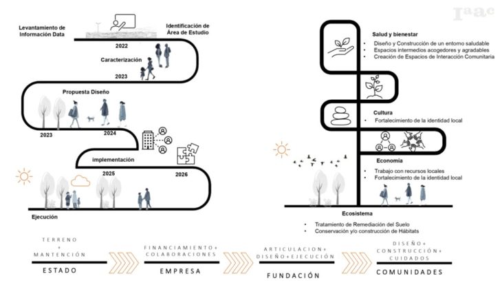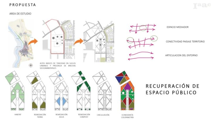 Se plantea la creación de un circuito metabólico como estrategia de remediación para tratar estas desigualdades de un modo urbano por medio del rescate de plazas públicas ubicadas en zonas de riesgo ambiental actualmente en situación de deterioro y que a su vez presente un alto potencial de (Re)conversión, (Re)mediación, (Re)significación del espacio público degradado de la mano de una perspectiva de cuidados tomando como estrategia los saberes ancestrales del pueblo aymara y su reconocimiento y vinculo con el entorno que habita desde la perspectiva de su cosmovisión.