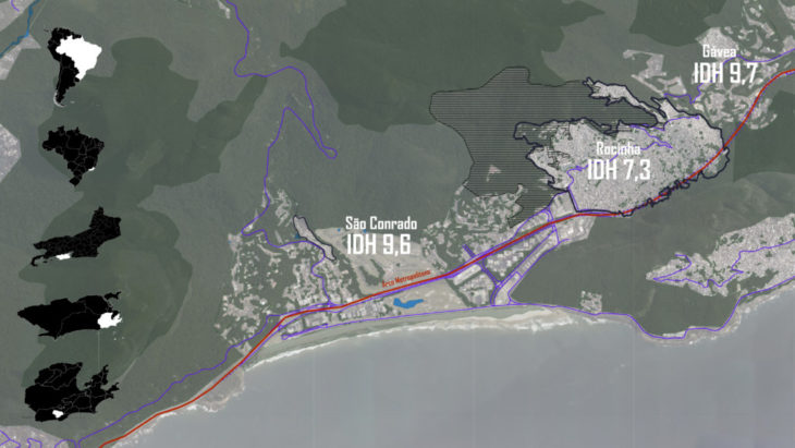 Situada en la privilegiada zona sur de Río de Janeiro, junto a los barrios con el IDH (Índice de Desarrollo Urbano) más alto de la ciudad, la favela Rocinha tiene cualidades únicas de desarrollo territorial compacto y expresión social, económica y cultural heterogénea. Sus condiciones sociales y geográficas darán lugar a lo que hoy se denomina uno de los territorios con mayor índice demográfico de la ciudad y la falta de infraestructura urbana para hacer frente a esta densidad y la especulación inmobiliaria informal serán estructurantes para la precariedad de la vida urbana en este territorio.
