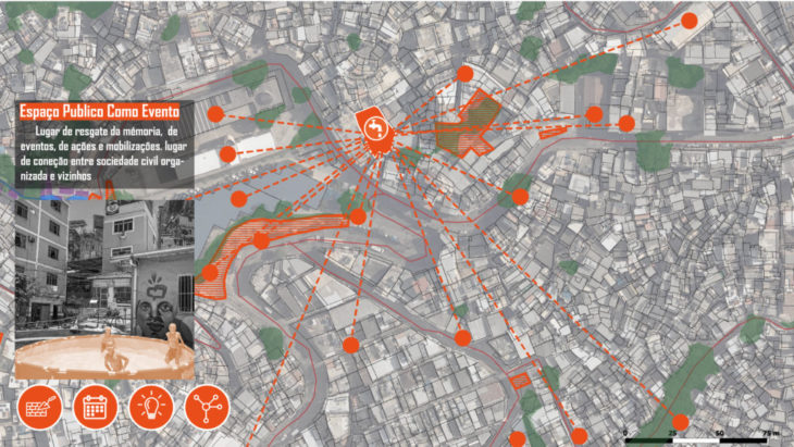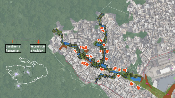 Para el desarrollo de propuestas urbanas sistémicas, se selecciona el subbarrio de Vila Verde como proyecto piloto para la aplicación de propuestas de tratamiento de aguas y disponibilidad de espacios públicos. A partir de la comprensión de la morfología existente, el proyecto busca liberar la pendiente de la conformación de las casas existentes. Un proceso de arqueología del paisaje en el que el curso del río, actualmente cubierto, y los nuevos espacios públicos tendrán un diseño que respete la estructura urbana existente potenciando las relaciones sociales. Acupuntura urbana en territorios informales basada en la interpretación morfológica, proponiendo soluciones locales para el uso del agua como recurso natural, cultural y paisajístico.