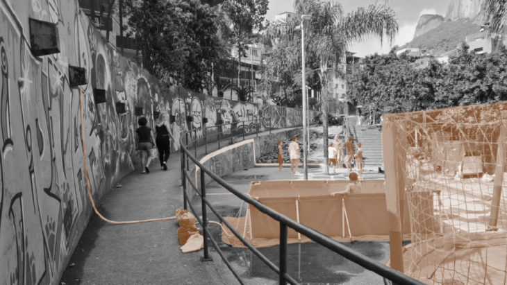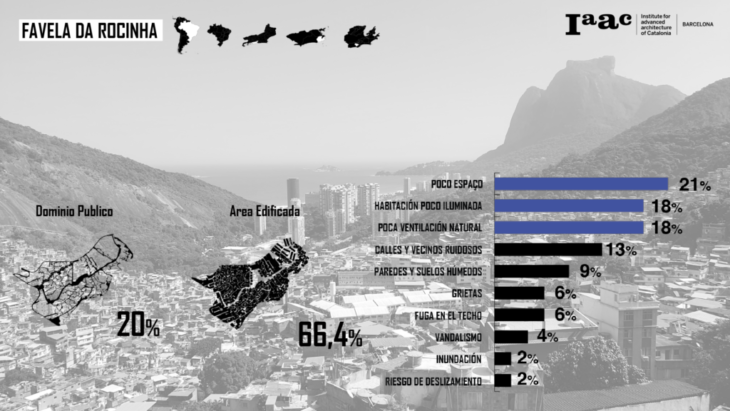 Situada en la privilegiada zona sur de Río de Janeiro, junto a los barrios con el IDH (Índice de Desarrollo Urbano) más alto de la ciudad, la favela Rocinha tiene cualidades únicas de desarrollo territorial compacto y expresión social, económica y cultural heterogénea. Sus condiciones sociales y geográficas darán lugar a lo que hoy se denomina uno de los territorios con mayor índice demográfico de la ciudad y la falta de infraestructura urbana para hacer frente a esta densidad y la especulación inmobiliaria informal serán estructurantes para la precariedad de la vida urbana en este territorio.