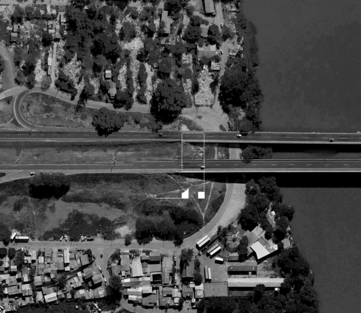A ideia de paisagem como infraestrutura e infraestrutura como paisagem direciona o projeto ao uso dos espaços residuais que se acumulam ao longo da estrada que corta o território. São pontos de convergência entre potenciais e riscos que formam nós de interesse socioambiental. A relação com o rio, a economia da reciclagem desordenada e a expansão territorial em direção a uma área de preservação culminam em profunda desordem urbana e consequentemente risco para a população, falta de infraestrutura e habitabilidade dos espaços públicos.