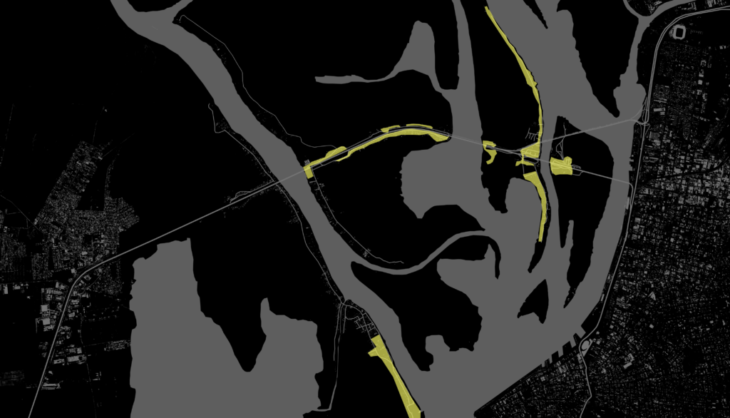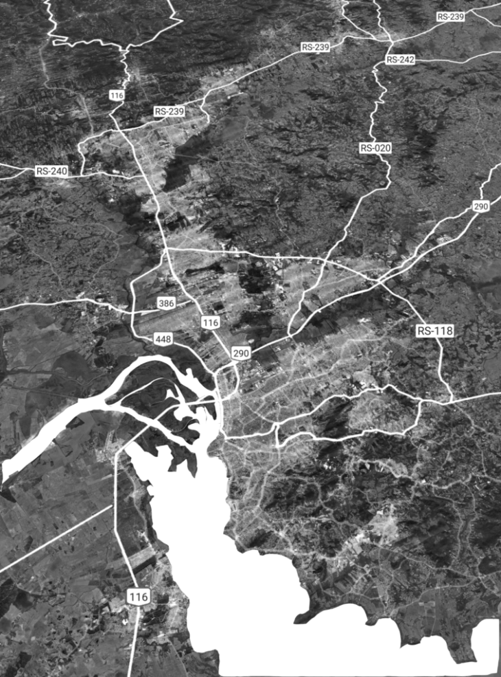 Um conjunto de ilhas é formado no delta do rio Jacuí, junto a cidade de Porto Alegre. Nessa região pobre da cidade a ocupação se organizou junto a autopista que corta as ilhas, criando uma situação de ocupações irregulares lineares ao longo de uma área de preservação ambiental. O interesse no projeto surge da interface entre risco social e risco ambiental e busca propor uma forma de ordenar a ocupação, promover coesão social e produzir recursos renováveis para a população como forma de equalizar a questão socioambiental através da infraestructura existente e/ou proposta.