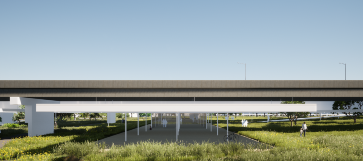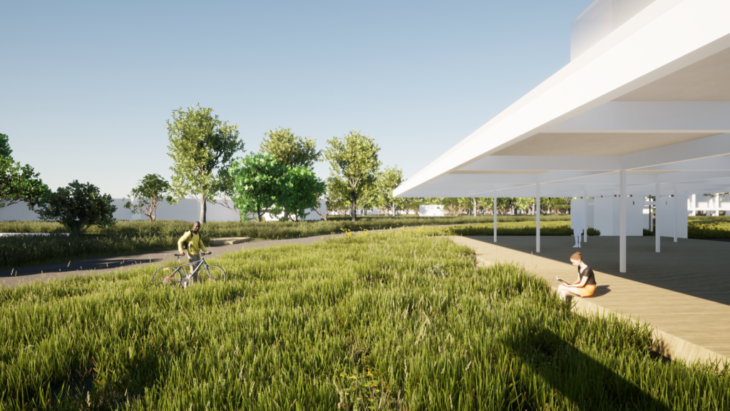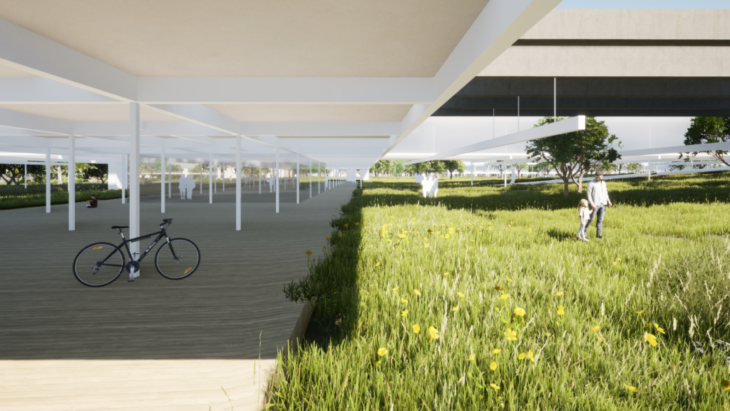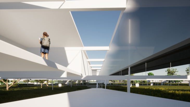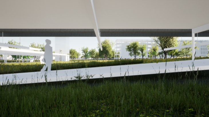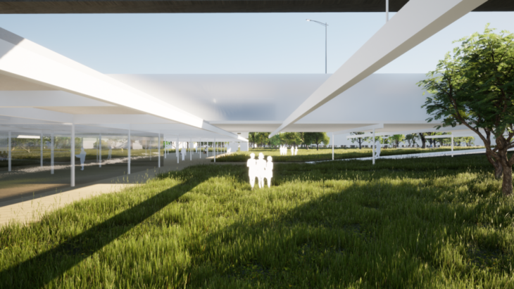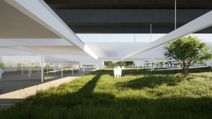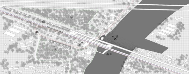 Ao se manifestar enquanto peça inseparável da infraestrutura o edifício (ou estruturas adjacentes) apresenta caráter simbiótico. É neste contexto que se espera parasitar infraestruturas já em via de obsolescência com uma proposta radical de ressignificá-las. Adota-se o ideal de propostas com o High Line Park de Nova York ou o Mumbai Green Mile (MVRDV) de transformar espaços negligenciados em estruturas de fruição da vida urbana, se propõe um habitáculo dos serviços urbanos relacionados ao público, em volta de um programa de educação ecológica e produção industrial. No entanto, diferentemente dos projetos citados, há a presença de fortes componentes de sensibilidade socioambiental. A poluição do rio Jacuí e a necessidade de regularização fundiária e acesso a infraestrutura de espaços públicos da população posicionada entre as margens da BR116 e da APA (Área de Proteção Ambiental) eleva o caráter do projeto a outro nível de complexidade.