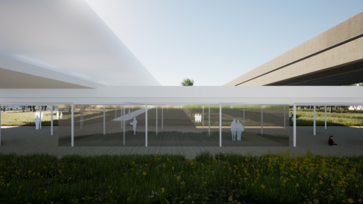 Surge então o trabalho de delimitar as formas de intervir na paisagem, de parasitar infraestruturas lineares do extrativismo propondo uma nova ótica de desenvolvimento econômico dentro de uma lógica de arquitetura latino-americana conservacionista e sobretudo de produzir um discurso ecológico coerente entre espécies. Parece premente restabelecer a ordem natural entre natureza e ser humano que existe dentre os povos originários latino-americanos, agora de uma forma necessariamente orientada a conduzir melhorias de vida a populações desamparadas pela desigualdade climática. Além disso, o trabalho se propõe a expandir os ideais do que se pode fazer nos cinturões de “cidade porvir” (GANDY, 2022) para conter os avanços da “não cidade”, do extrativismo e das mudanças climáticas que desarticulam formas de viver dos povos originários e de grupos segregados da sociedade de consumo e dos centros urbanos. Em suma, a questão: É possível propor nova forma de habitar, se manifestar física e simbolicamente dentro de um espaço seguro para a “primeira natureza”, cooptar infraestruturas a favor de uma natureza produtiva não-predatória? Neste trabalho, portanto, a fim de mediar o pacto antrópico-natural, propõe-se um centro de reciclagem e pesquisa em bioplástico que serve como instrumento de investigação para alterar a práxis em regiões ambientalmente sensíveis. A proposta de um espaço público e semipúblico que congregue a comunidade e faça com que a natureza e o humano penetrem nas infraestruturas urbanas parece ter sido a tônica da arquitetura Latino-Americana do século XX e merece reinterpretação sob ótica atual. O edifício é concebido como um dispositivo que propõe esmaecer a linha entre o natural e o artificial. De forma simbiótica, o dispositivo arquitetônico pretende afinar a associação estabelecida entre seres de espécies diferentes (natureza e sociedade, rural e urbano, energia de combustíveis fósseis e energia renovável), bem como fomentar uma economia circular latente através do ensino e prototipagem de produtos feitos a partir de matérias-primas recicladas, pesquisa e desenvolvimento de tecnologias e biomateriais e eventos na comunidade, articulando em si a mobilidade local.