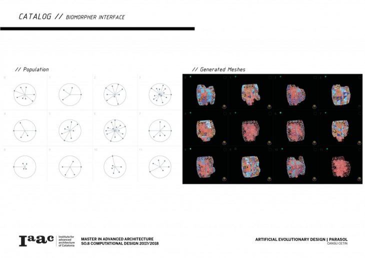 Artificial Evolutionary Design // Parasol is a project of IaaC, Institute for Advanced Architecture of Catalonia developed at Master in Advanced Architecture for S0.6 Computational Design Course in 2017-2018 by:
