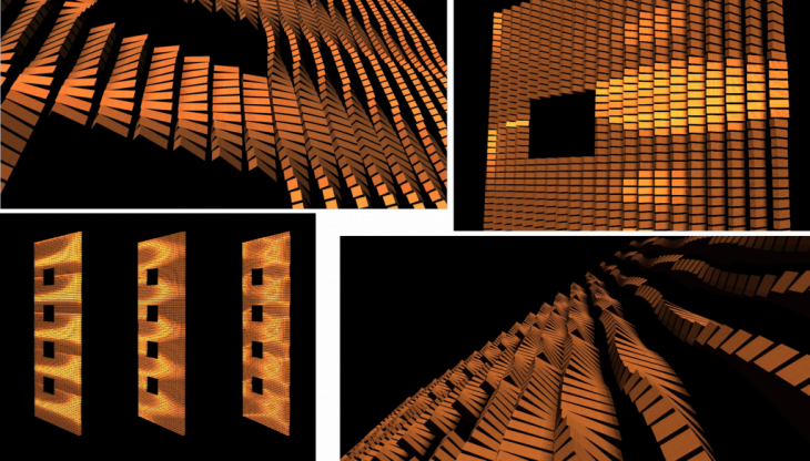 For this exercise a black and white image is the source for the effect that the bricks create. The bricks rotate depending on the position of the sun to maintain correct shading.