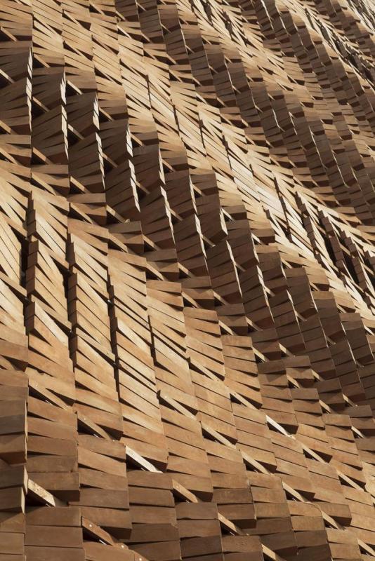‘Cloaked in Bricks’ is a façade designed for a residential building by Admun Studio located in Tehran, Iran. Elements that affected the actual design of the façade included the sun, traffic noise, privacy and the view. All these parameters resulted in the individual rotation of the bricks. An apparent effect is that the bricks create a light or shadow depending on the rotation and on the sun position.
